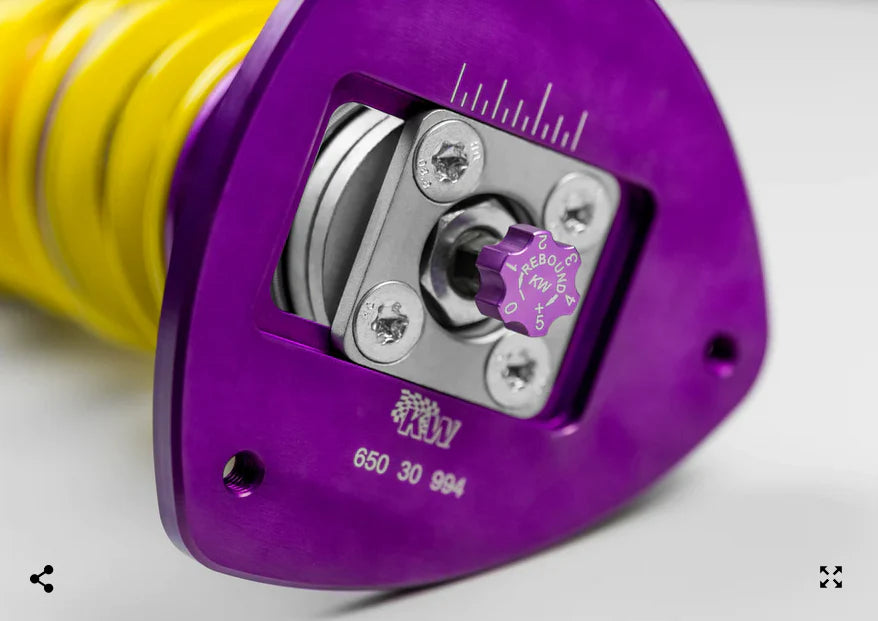 Beim KW Gewindefahrwerk Variante 2 "inox-line" können Sie dazu als versierter Sportfahrer durch die individuell einstellbare Zugstufenabstimmung selbst Einfluss auf das Handling und den Komfort nehmen. Durch die 16 exakten Klicks können Sie die KW Dämpfer straffer oder komfortabler abstimmen, ohne dabei das Bodenventil der Druckstufe zu beeinflussen.